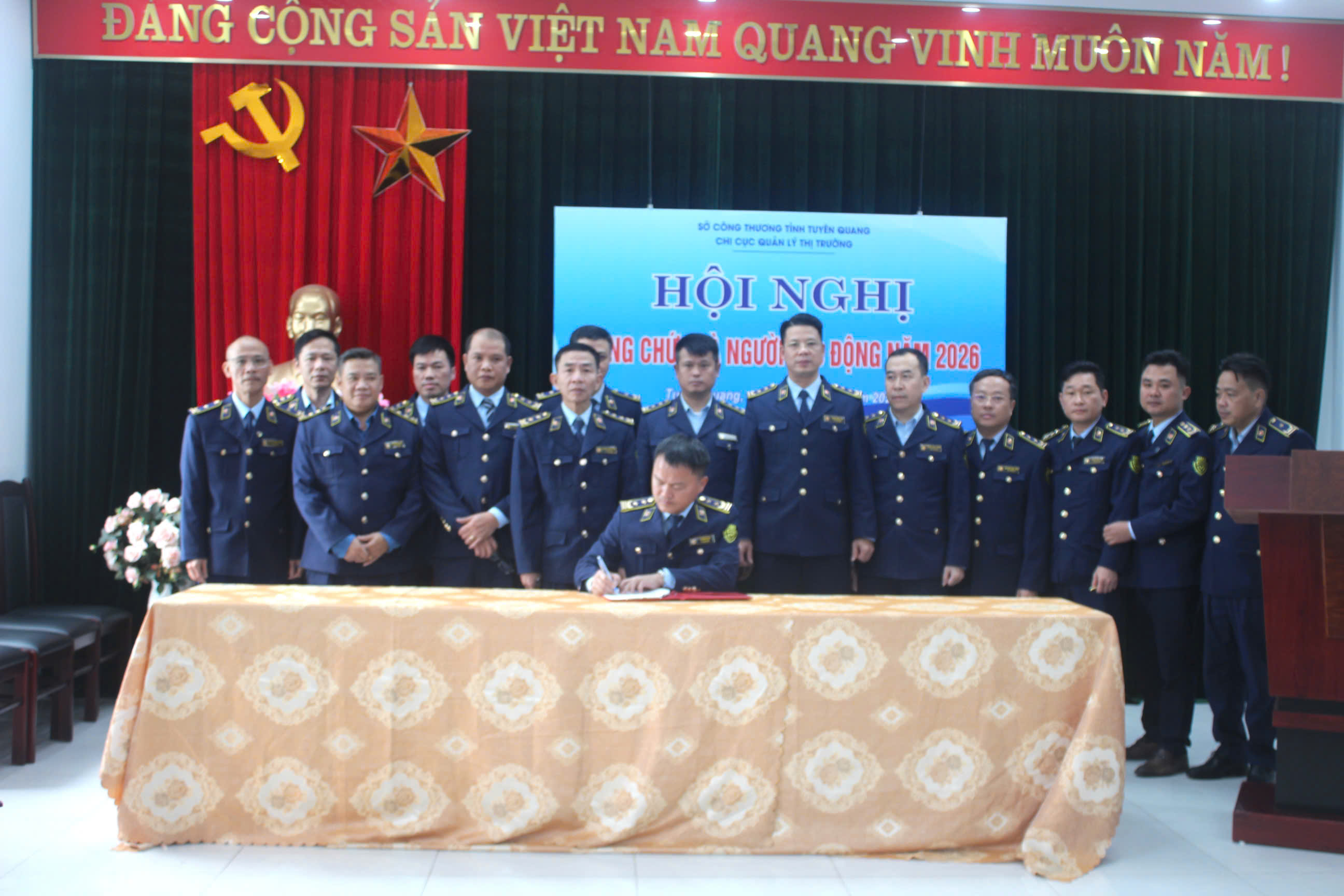 Trong khuôn khổ Hội nghị Công chức và người lao động năm 2026, Chi cục Quản lý thị trường tỉnh Tuyên Quang đã tổ chức ký kết giao ước thi đua năm 2026, thể hiện quyết tâm của toàn thể công chức, người lao động trong việc phấn đấu hoàn thành thắng lợi các chỉ tiêu, nhiệm vụ được giao.