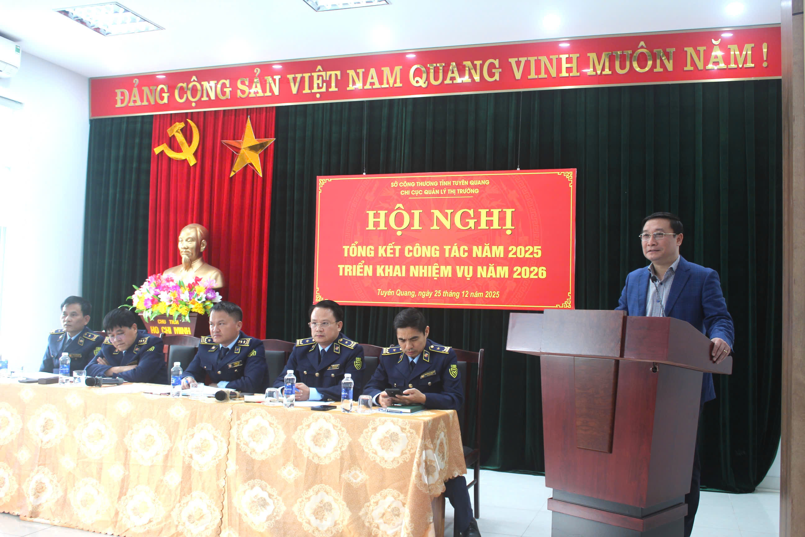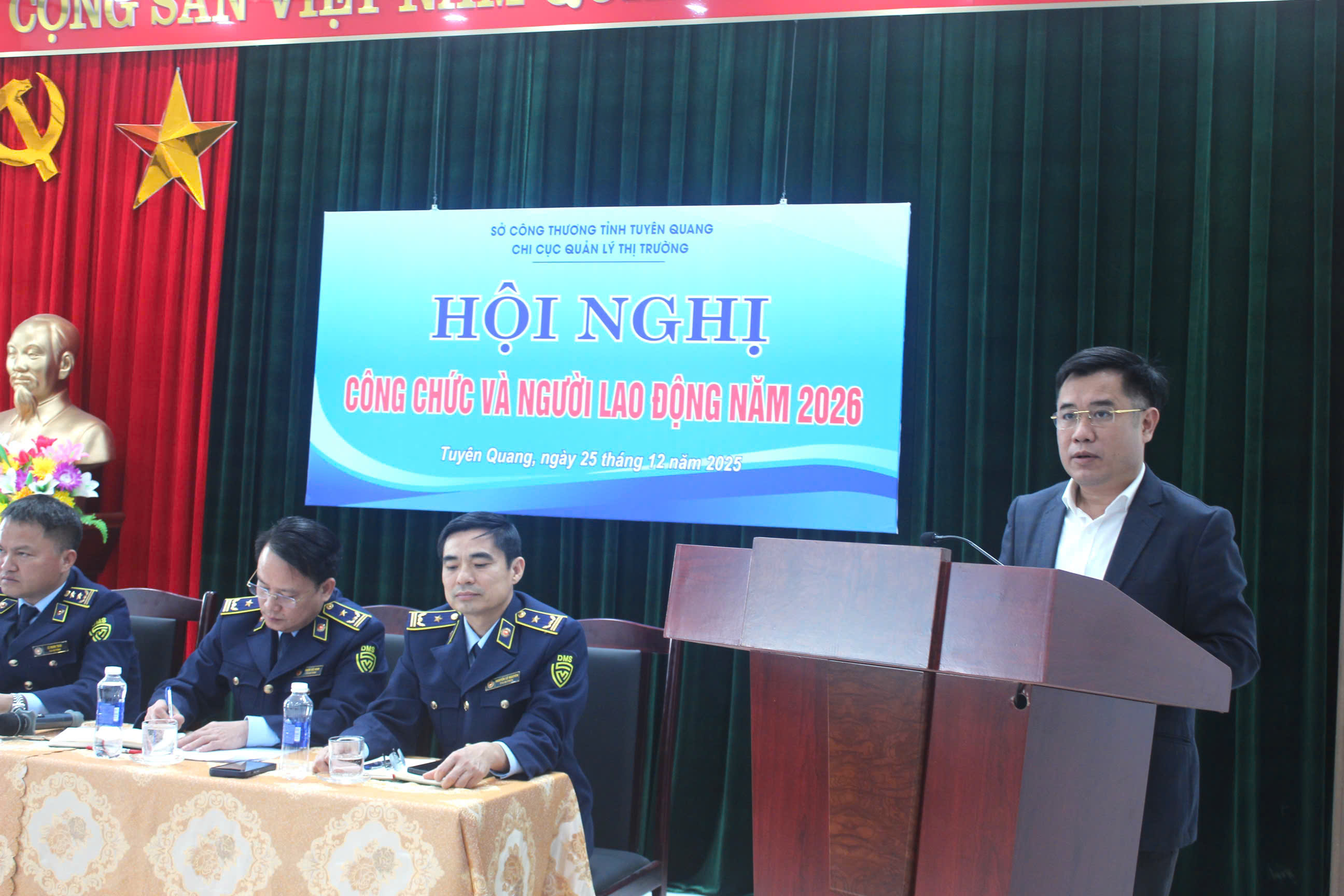 Ngày 25 tháng 12 năm 2025, Chi cục Quản lý thị trường tỉnh Tuyên Quang đã tổ chức 03 hội nghị quan trọng, gồm: Hội nghị Công chức và người lao động năm 2026; Hội nghị tổng kết công tác xây dựng Đảng và đảng viên năm 2025, triển khai nhiệm vụ năm 2026; Hội nghị tổng kết công tác năm 2025, triển khai nhiệm vụ năm 2026.