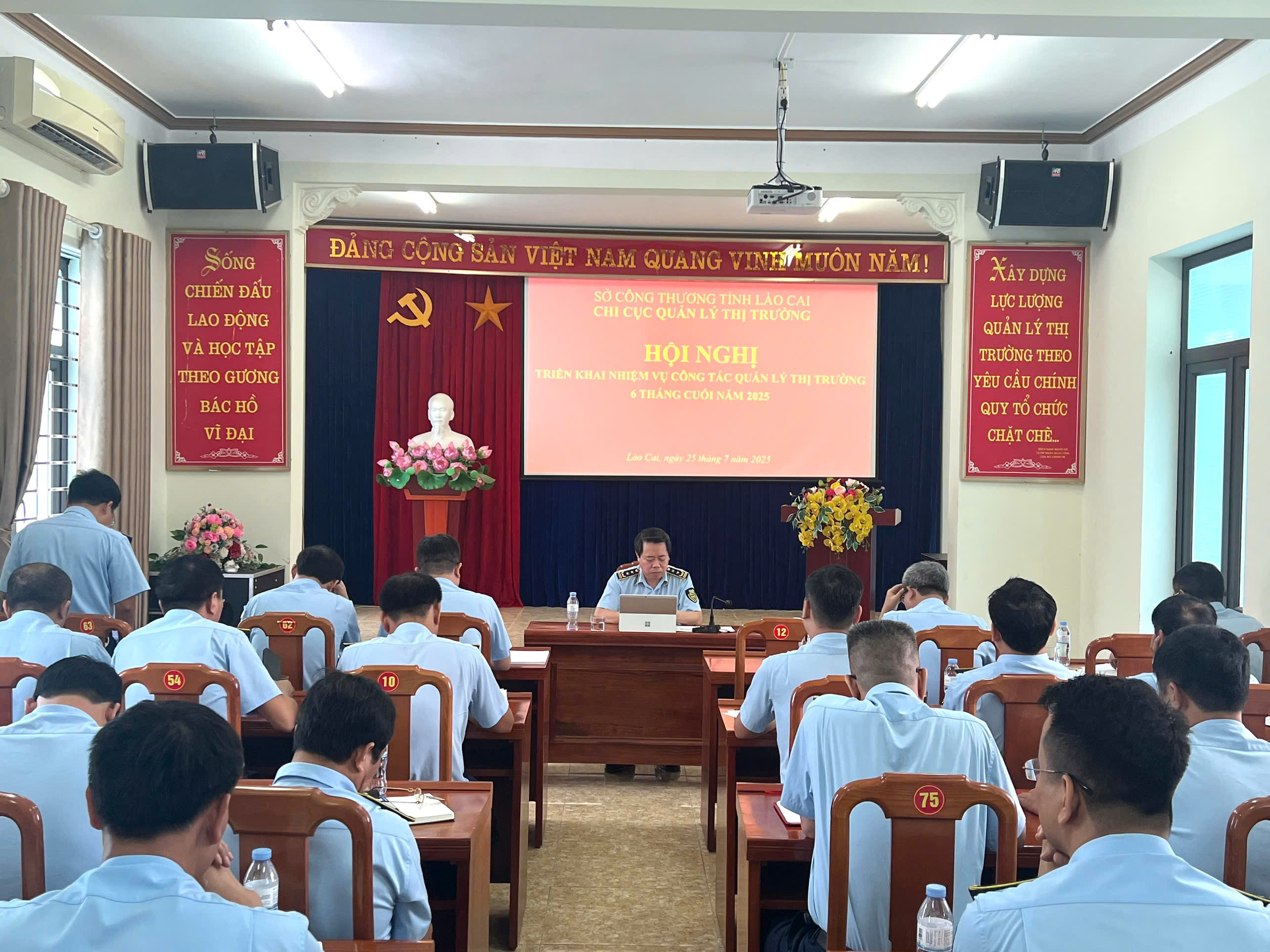 Sáng ngày 25 tháng 7 năm 2025, Chi cục Quản lý thị trường tỉnh Lào Cai đã tổ chức Hội nghị triển khai nhiệm vụ công tác Quản lý thị trường 6 tháng cuối năm 2025, chủ trì Hội nghị có đồng chí Đỗ Du Bắc, Chi cục trưởng Chi cục Quản lý thị trường tỉnh Lào Cai; tham dự Hội nghị còn có đầy đủ các đồng chí lãnh đạo Chi cục, lãnh đạo các Phòng chuyên môn, nghiệp vụ, Đội trưởng, Phó Đội trưởng các Đội Quản lý thị trường trực thuộc.