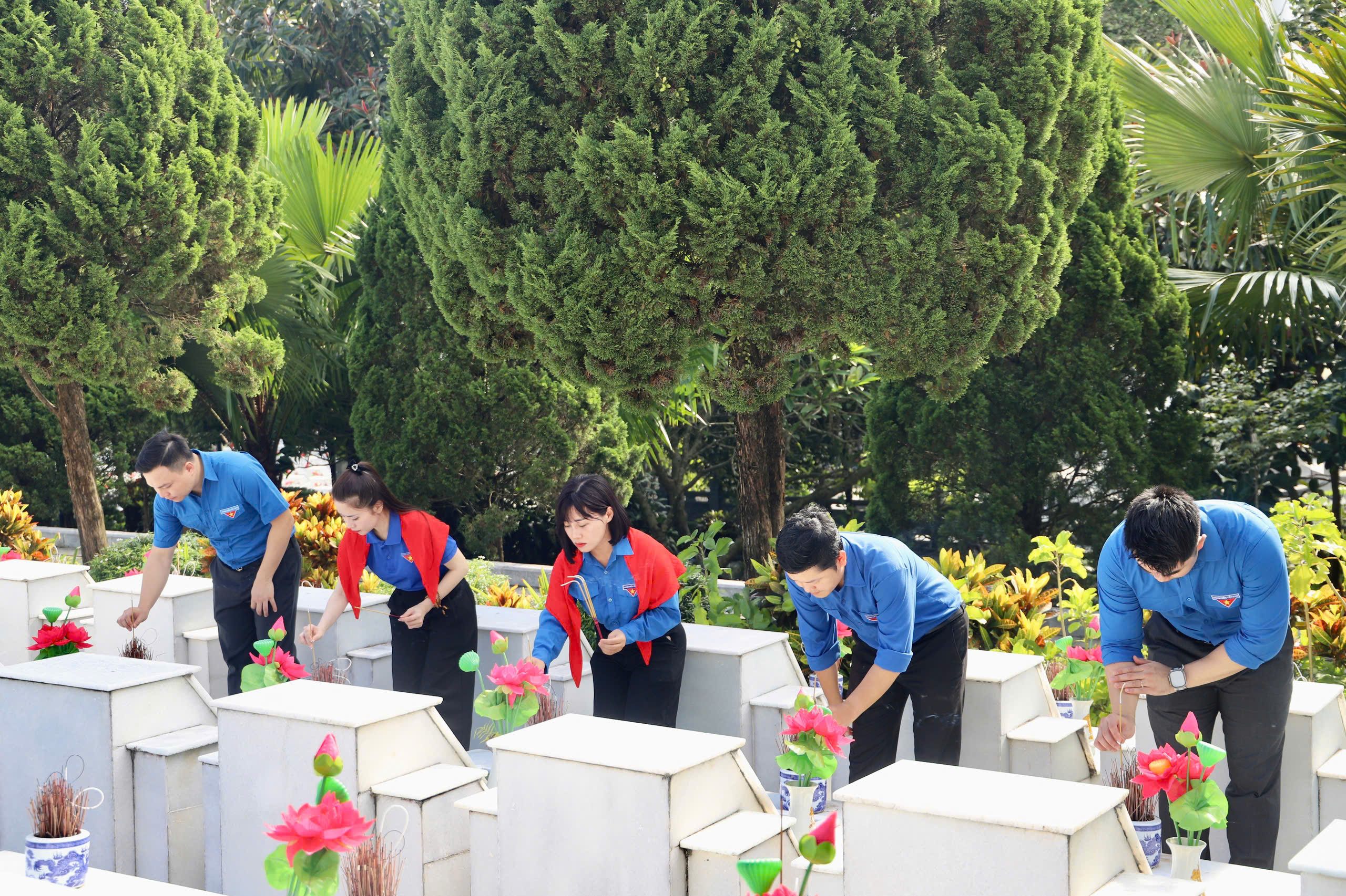 Đặc biệt, trong khuôn khổ hoạt động, đoàn công tác cũng tổ chức lễ dâng hương tại nghĩa trang Liệt sĩ Quốc gia Vị Xuyên, Hà Giang, nhằm giáo dục truyền thống “Uống nước nhớ nguồn” và thể hiện lòng biết ơn sâu sắc đối với các thế hệ cha anh đã hy sinh vì sự nghiệp cách mạng và độc lập dân tộc.