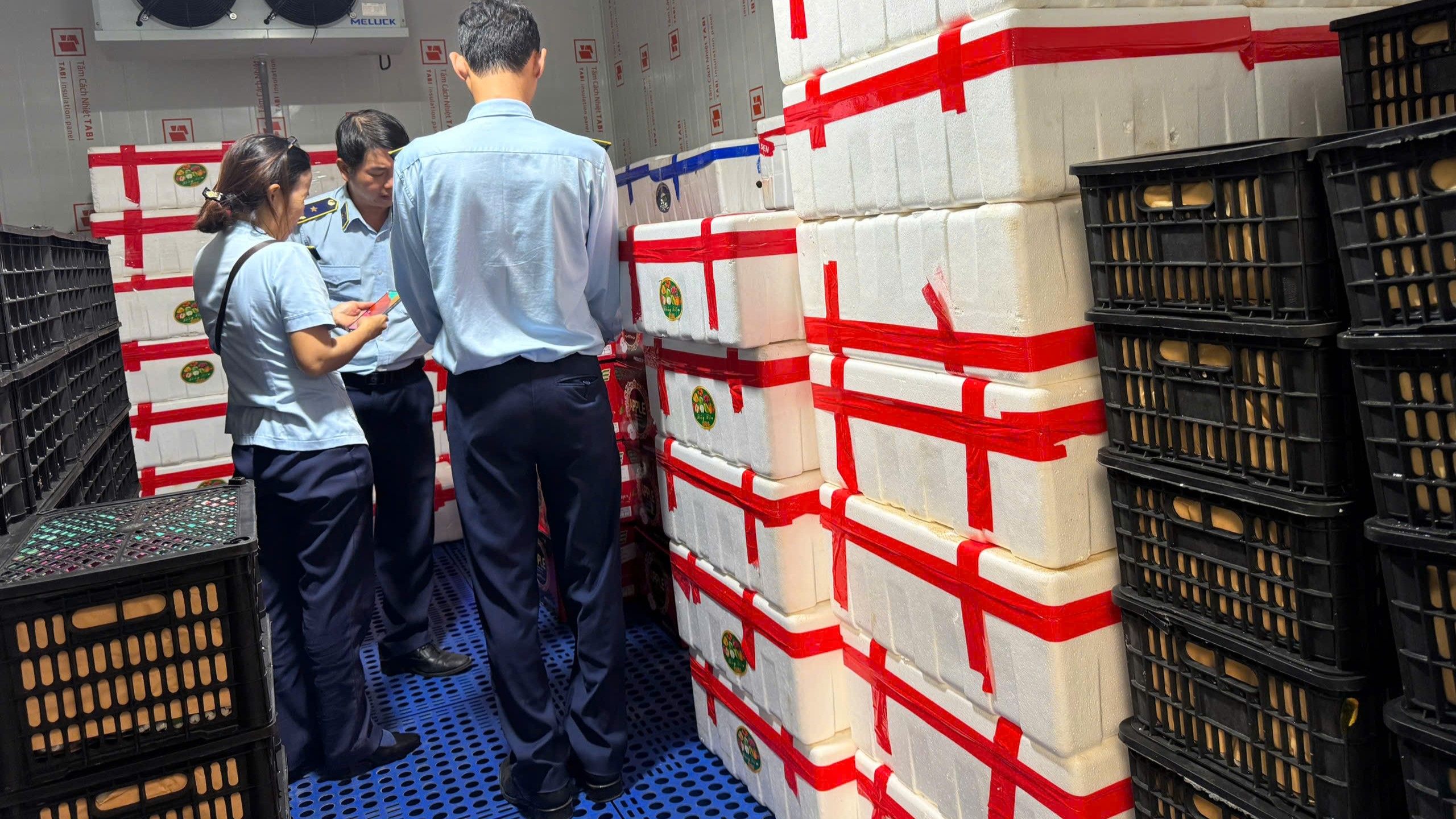 Qua kiểm tra, lực lượng chức năng phát hiện cơ sở đang kinh doanh nhiều loại quả tươi như táo, lựu, lê... với tổng số lượng hơn 2.500 kg, trị giá ước tính trên 50 triệu đồng. Toàn bộ số hàng hóa trên được chứa, bảo quản trong phòng/kho lạnh của Hộ kinh doanh L.D 1 (nhiệt độ bảo quản tại thời điểm kiểm tra: 5 độ C). Tuy nhiên, chủ hộ kinh doanh chưa xuất trình được giấy chứng nhận kiểm dịch thực vật, cũng như bất kỳ giấy tờ, tài liệu kèm theo hàng hóa, chứng từ chứng nhận xuất xứ hàng hóa, hợp đồng hóa đơn, chứng từ chứng minh tính hợp pháp của số hàng hóa nêu trên.
